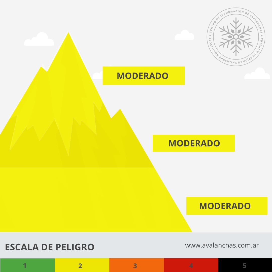 Para el sábado 25 se espera cielo cubierto con precipitaciones ligeras luego del mediodía. El viento será leve con ráfagas fuertes del sector NO. La temperatura disminuirá paulatinamente durante toda la jornada. El nivel de peligro continúa en Bajo (1) tanto para zona alpina como para zona media. El problema de avalanchas sigue siendo de nieve suelta húmeda, principalmente en horas de la tarde. Por lo que te recomendamos transitar con precaución en pendientes fuertes en especial en horas del mediodía y de la tarde. Evitar terreno extremo sobre todo si finaliza en resaltes rocosos, cañadones u otras trampas de terreno. En el sector oeste se pronostican nevadas leves para la zona alpina, esto podría dar lugar a la formación de placas de viento en sectores aislados de caras a sotavento.