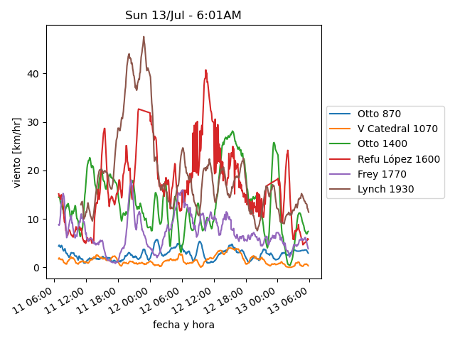 | Viento (km/h): | S/O | S/O | S/O | 9 | 13 |