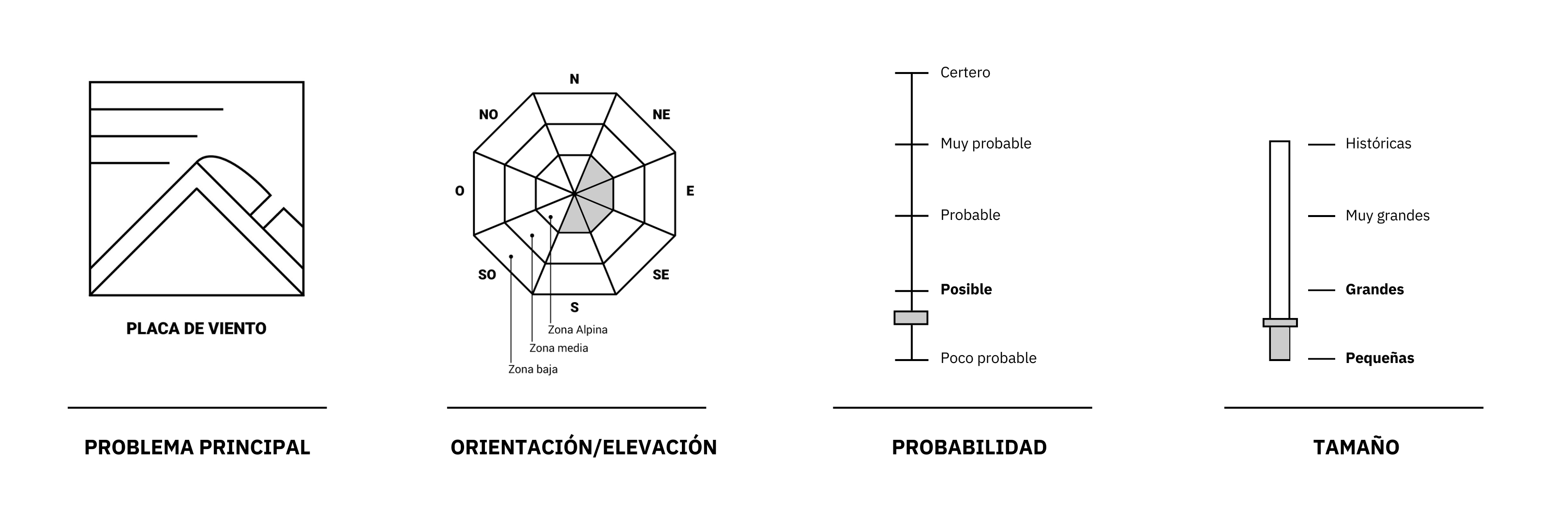 Se recomienda evitar lugares con evidente acumulación de nieve por viento, en terreno empinado cercano a los 35 grados, especialmente en orientaciones este, sureste y sur de la zona alpina.