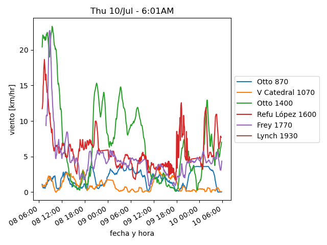 | Viento (km/h): | S/O | 7.2 | S/O | 3.1 | 3.7 |