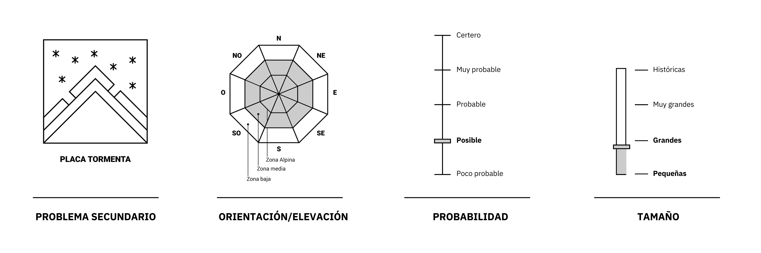 Posibles avalanchas de placa de tormenta en zonas alta y media, en todas las orientaciones.