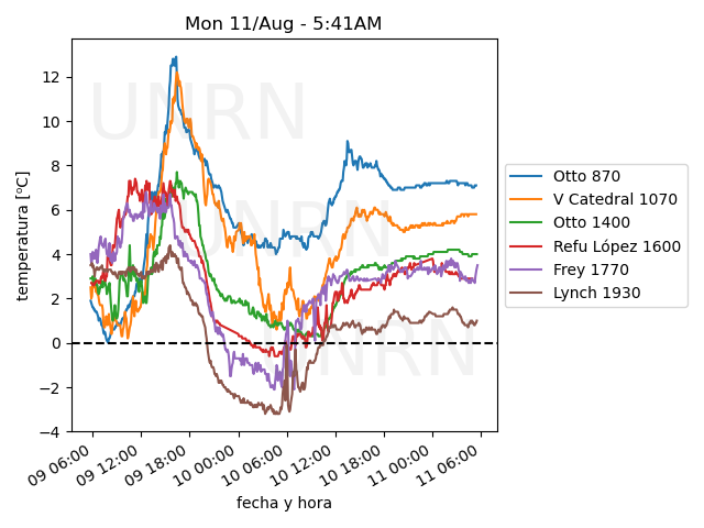 | Temp. Min. (C) 8 hs: | S/O | 3.8 | 2.7 | -0.6 | 2.8 |