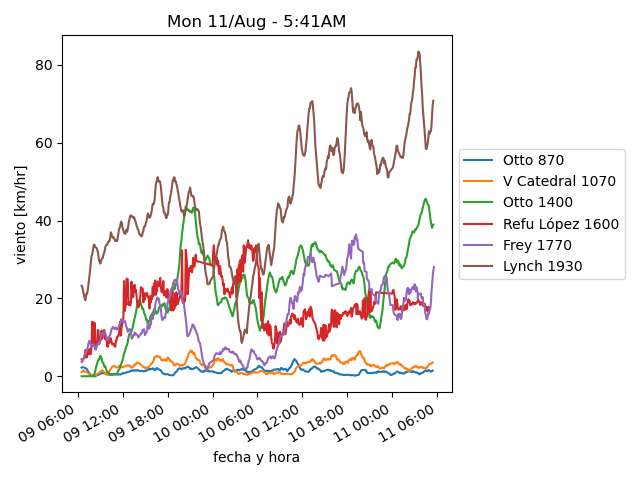 | Viento (km/h): | 1.7 | S/O | 4.7 | 3.4 | S/O |