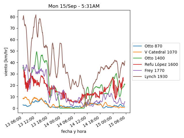 | Viento (km/h): | 2.9 | 15 | 54 | 20 | 39 |