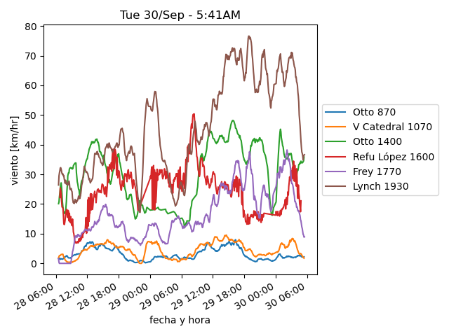 | Viento (km/h): | 64 | 53 | 8 | 22 | 45 |