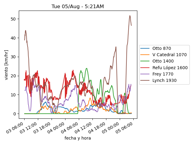 | Viento (km/h): | S/O | S/O | 48 | 15 | 28 |