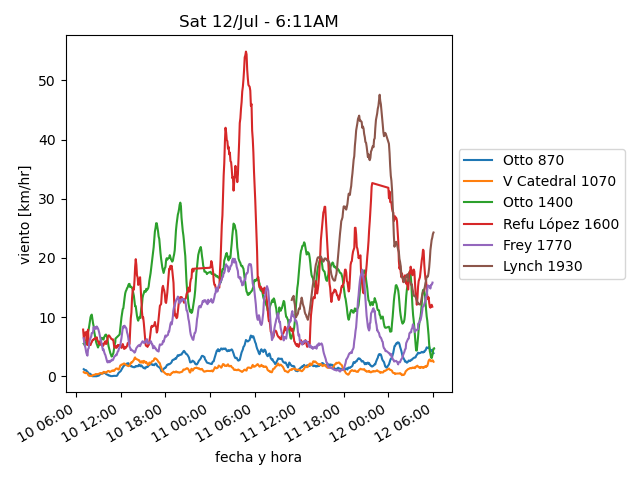 | Viento (km/h): | 11.7 | S/O | S/O | 11 | 4.8 |