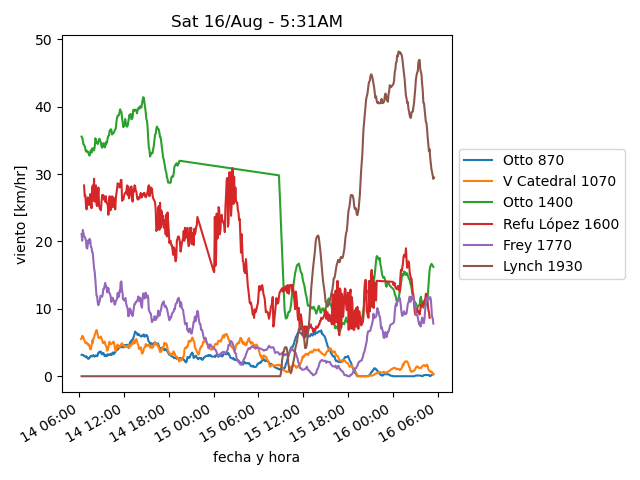 | Rafagas (km/h): | 16 | 8.0 | 34 | 11 | 21 |