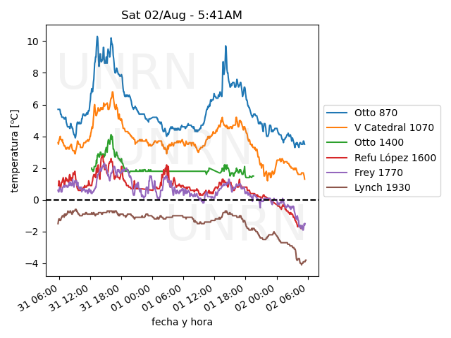 | Temp. Max. (C) 8 hs: | 4.1 | 6.3 | -0.6 | -1.2 | -2.3 |