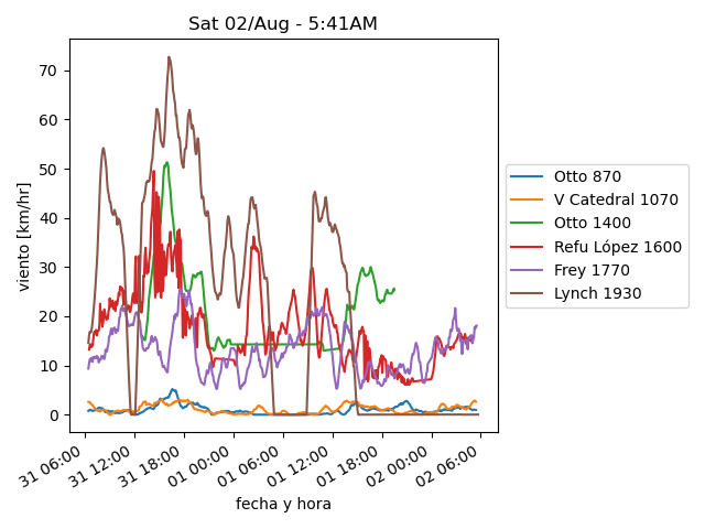 | Viento (km/h): | 64 | 83 | 21 | S/O | S/O |