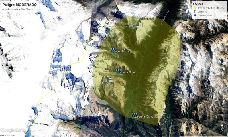 Avalanchas en terreno específico con pendientes igual o mayor a 35º. Con orientación sur al noreste por arriba de los 1200msnm. Y en sectores aislados con diversas orientaciones en zona media (sectores protegidos del viento, debajo de cornisas y dentro de concavidades