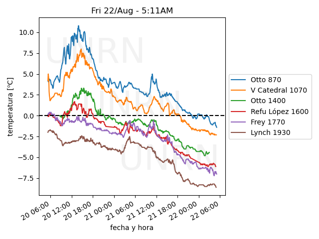 | Temp. Min. (C) 8 hs: | -1.3 | -1.2 | -2.3 | -4.6 | -9.0 |