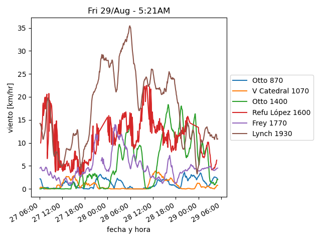 | Viento (km/h): | 30 | 15 | 4 | 24 | 13 |